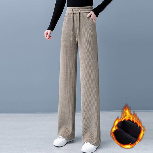 🔥✨Karácsonyi akció🎅🎁Bélelt és megerősített egyszínű húzózsinóros széles szárú női nadrág.