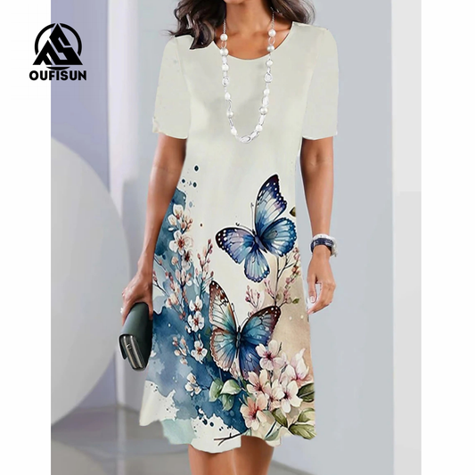 Divatos virágmintás rövid ujjú maxi ruhák Pillangós virágos hosszú ruha