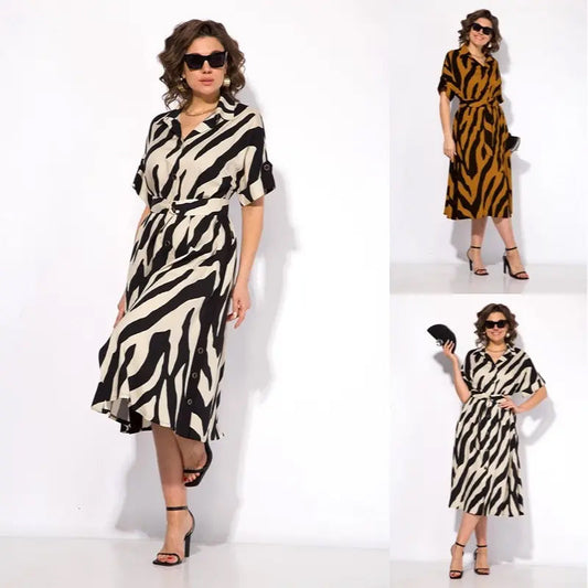 ✨🦓V-nyakú ruha mintás pántokkal és derékkal