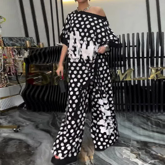 2 részes szett: túlméretezett felső és bő szárú nadrág nőknek