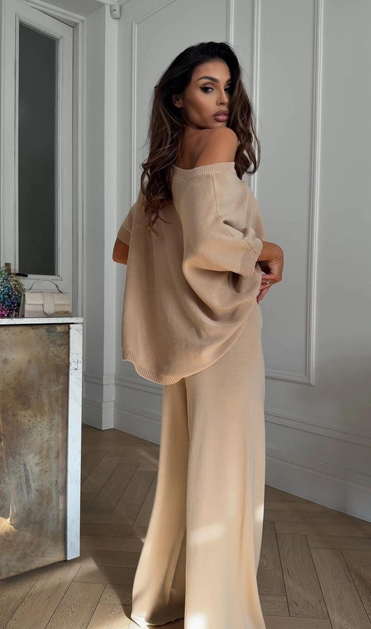 Elegáns kétrészes szett: rövid ujjú V-nyakkal + nadrág