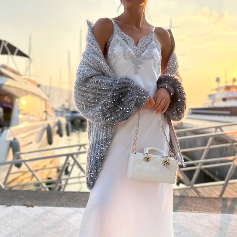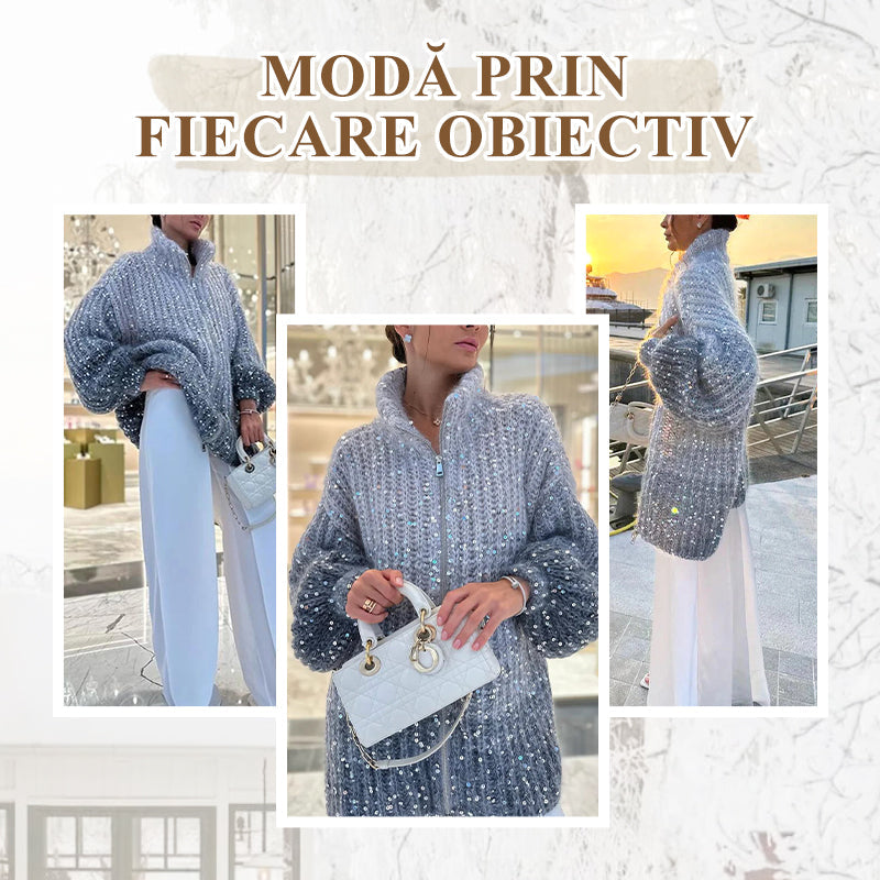 【Újdonságok 2025-ből】 Flitteres női kötött pulóver teljes cipzárral