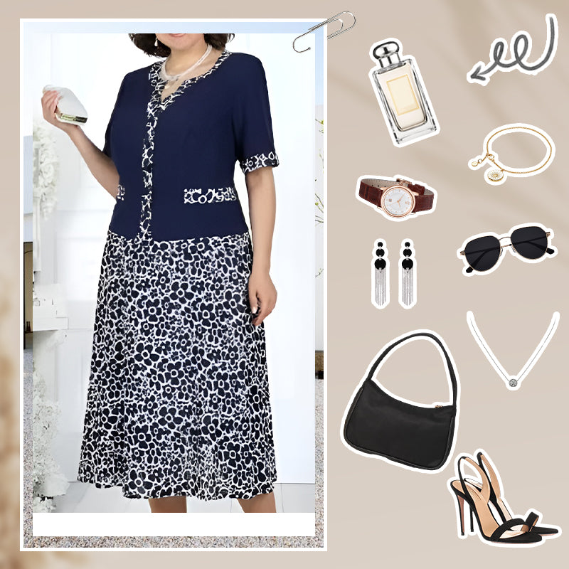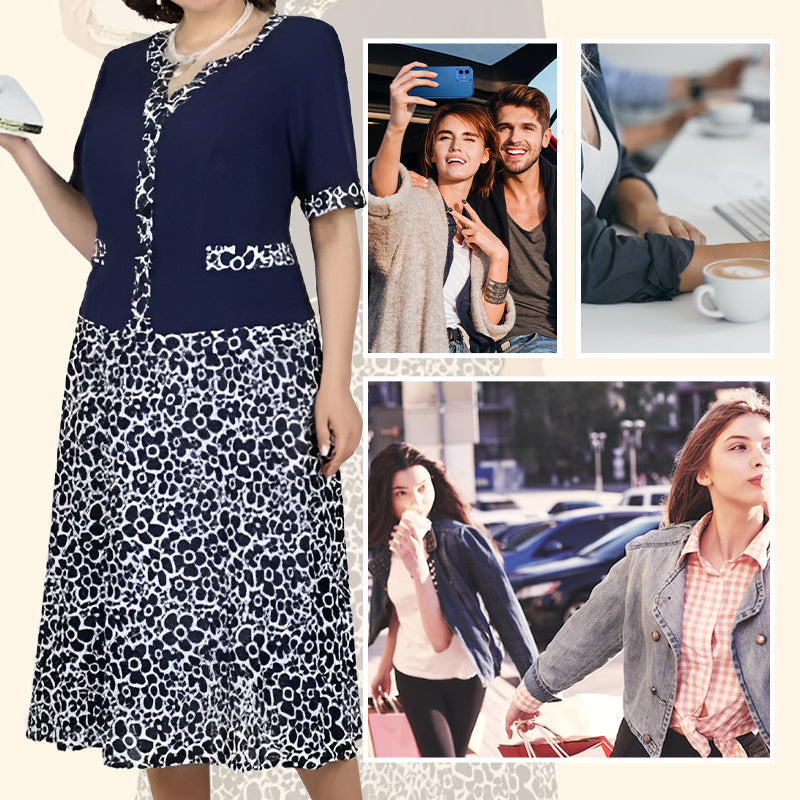 ELEGÁNS KÉTRÉSZES DIVATDIZAIN: Ez a stílusos ruha egy kétrészes szett benyomását kelti, amely egy virágos ruhát egy hozzáillő kardigán stílusú felsővel kombinál egyetlen harmonikus egészben a kényelem és az előnyös megjelenés érdekében.
