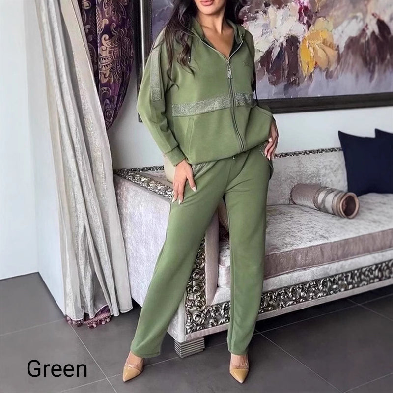 A csomag tartalma: 1 * női kétrészes flitterrel díszített egyszínű készlet
