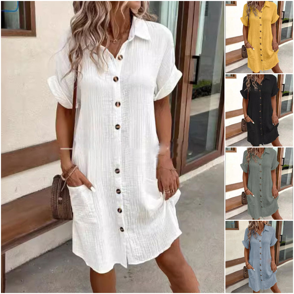 1*Női hétköznapi rövid ujjú, gombos zsebes ingruha