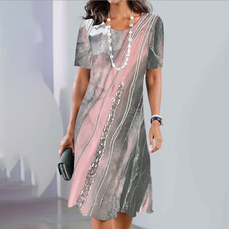 🌹Rózsa nyaklánc ingyen🌸Női alkalmi sokoldalú nyomtatott ruha