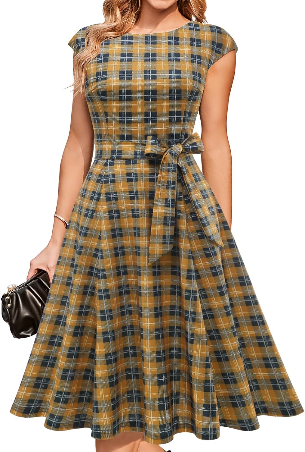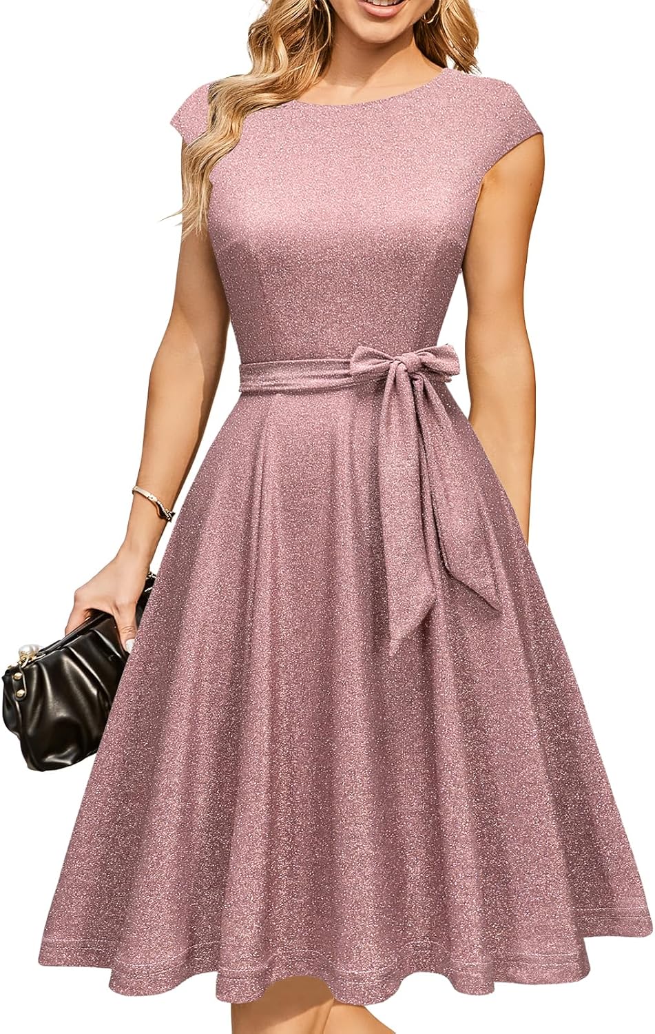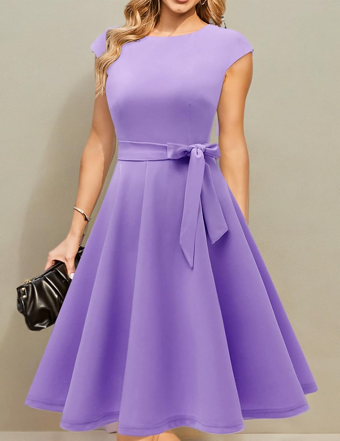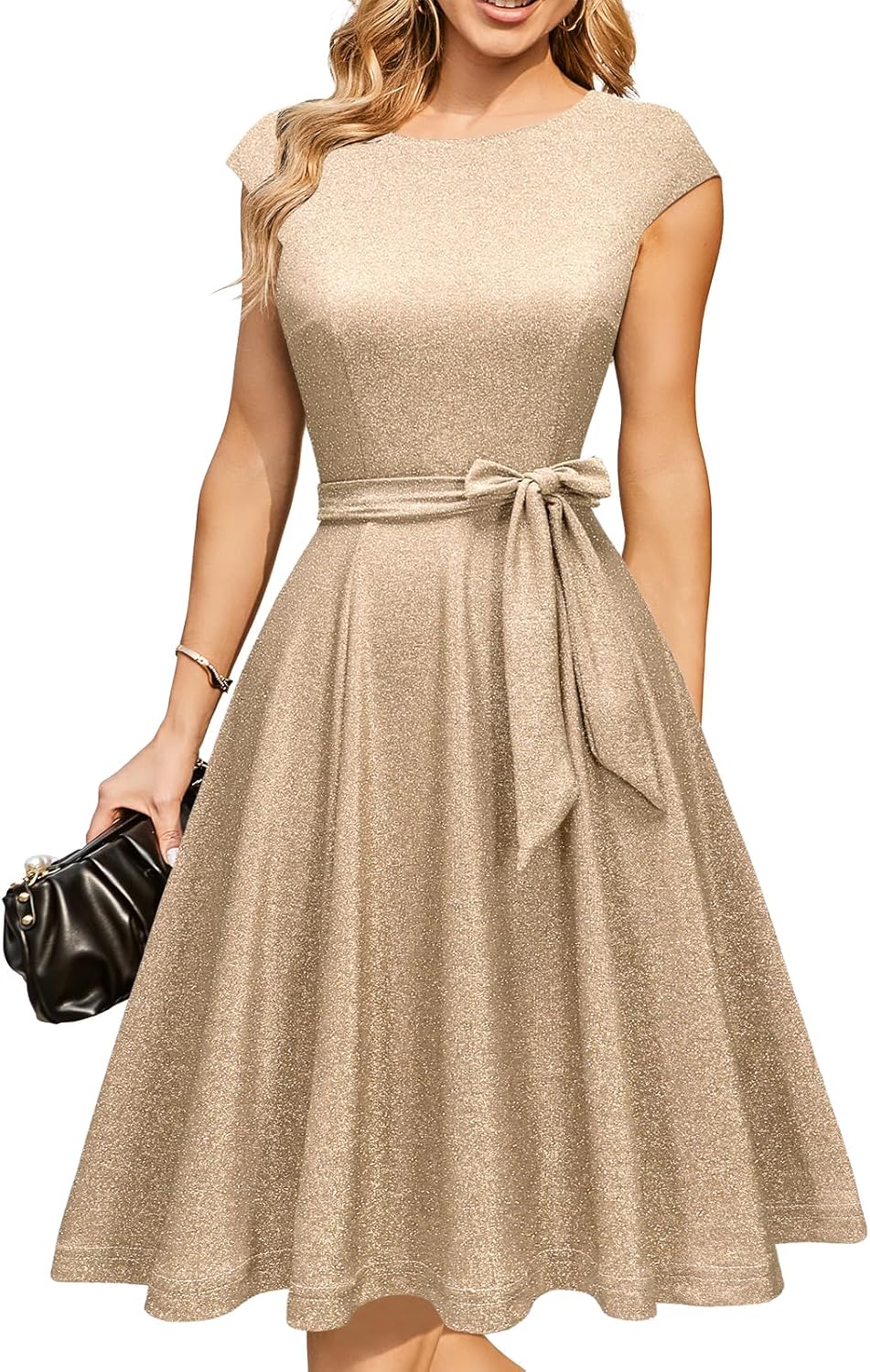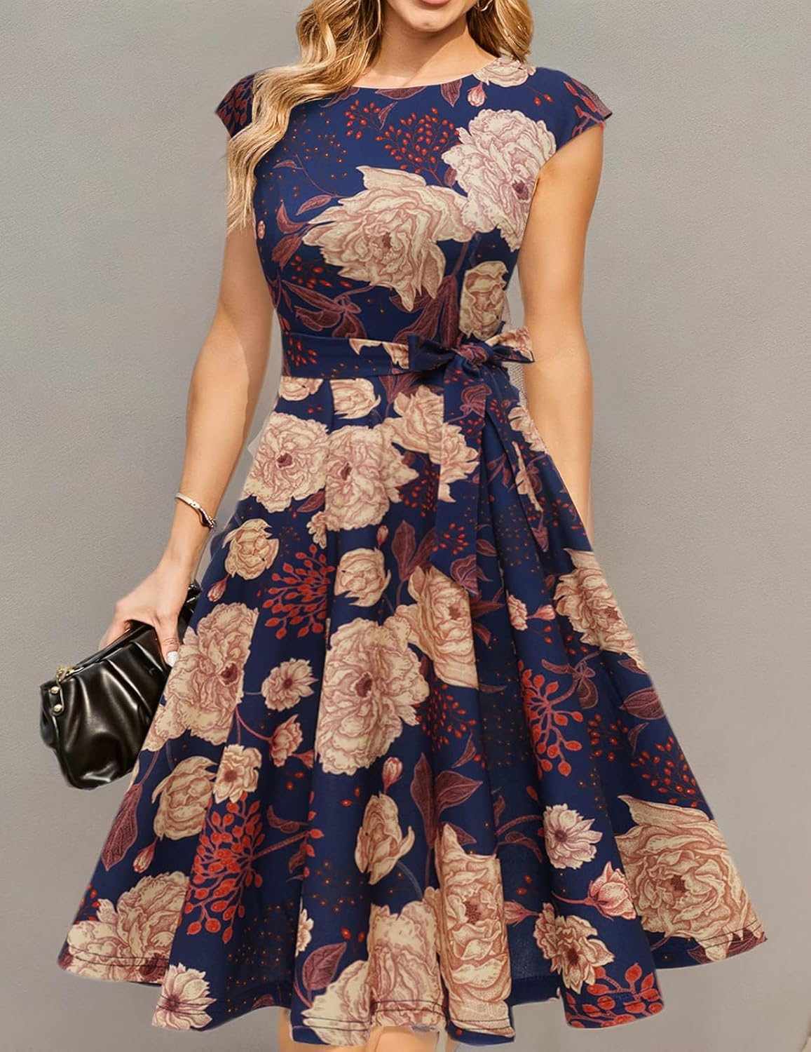 Női tavaszi/nyári 2025 ruhák: Ez a laza esküvői vendégruha tökéletes mind elegáns alkalmakra, mind a mindennapi viseletre! A rövid ujjak kiemelik a vállaidat! Ez a rugalmas és lenge western stílusú ruha kényelmes és derékban testhezálló anélkül, hogy túl szoros lenne.
