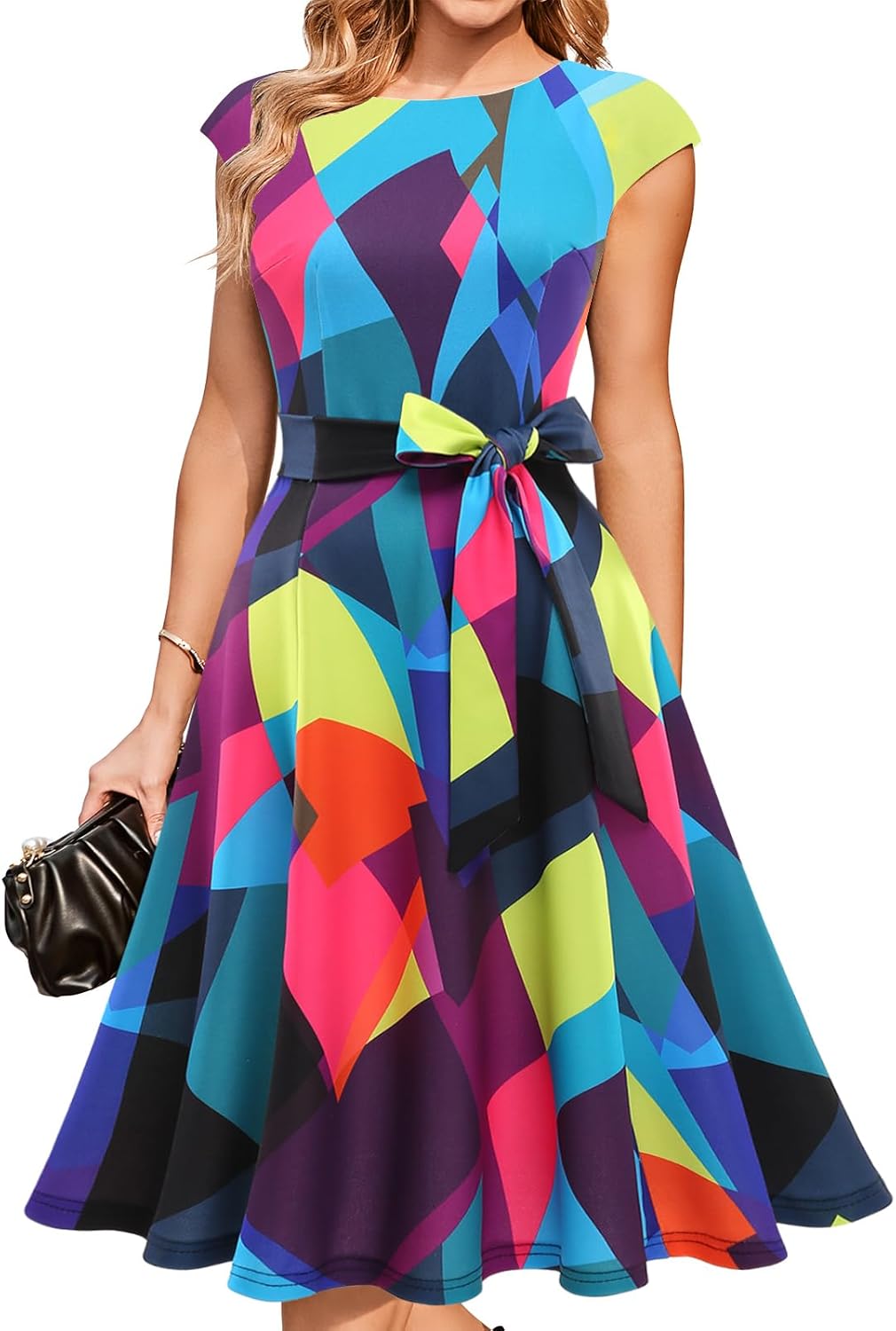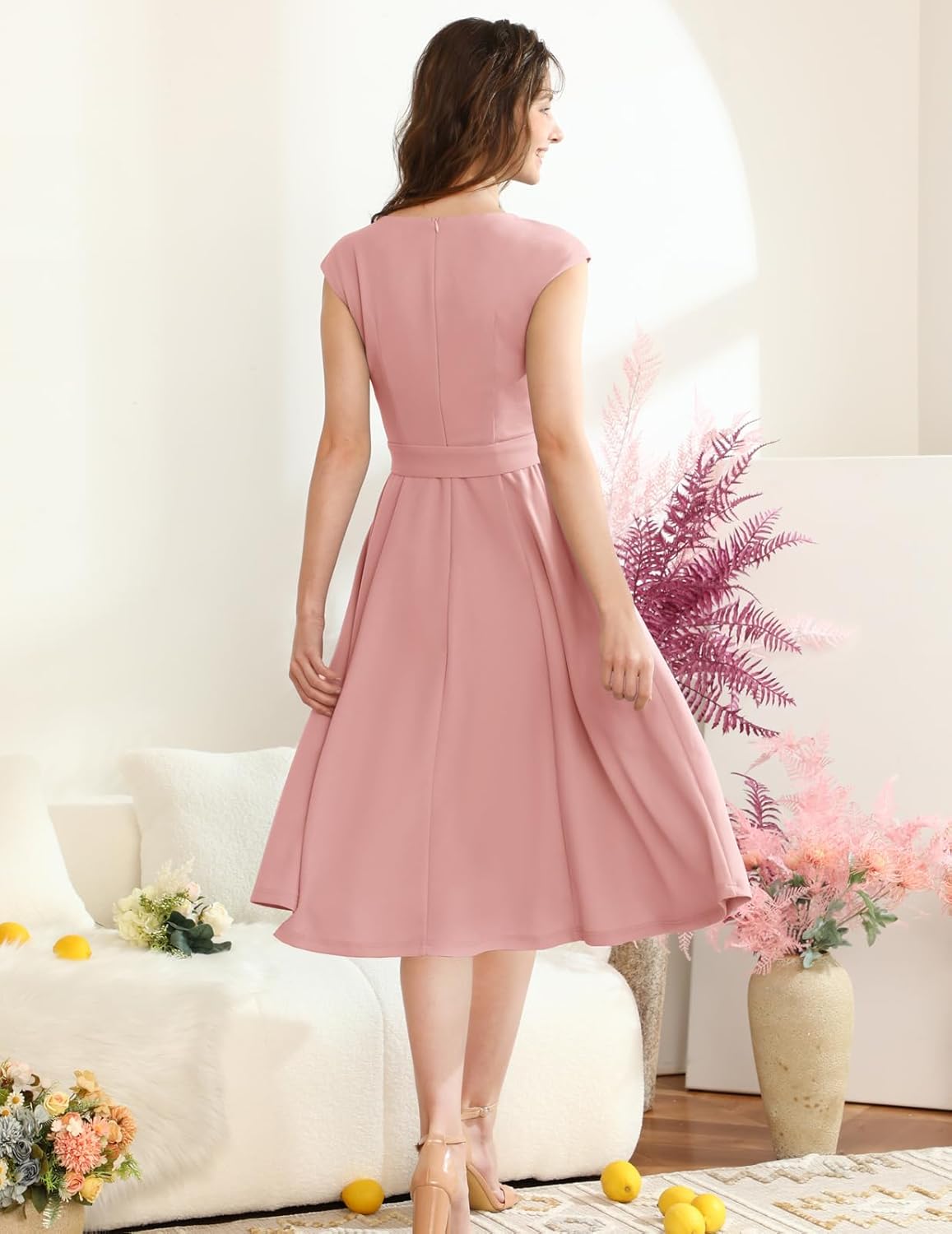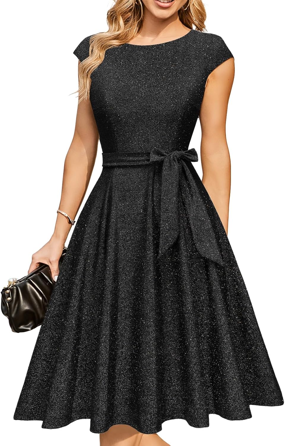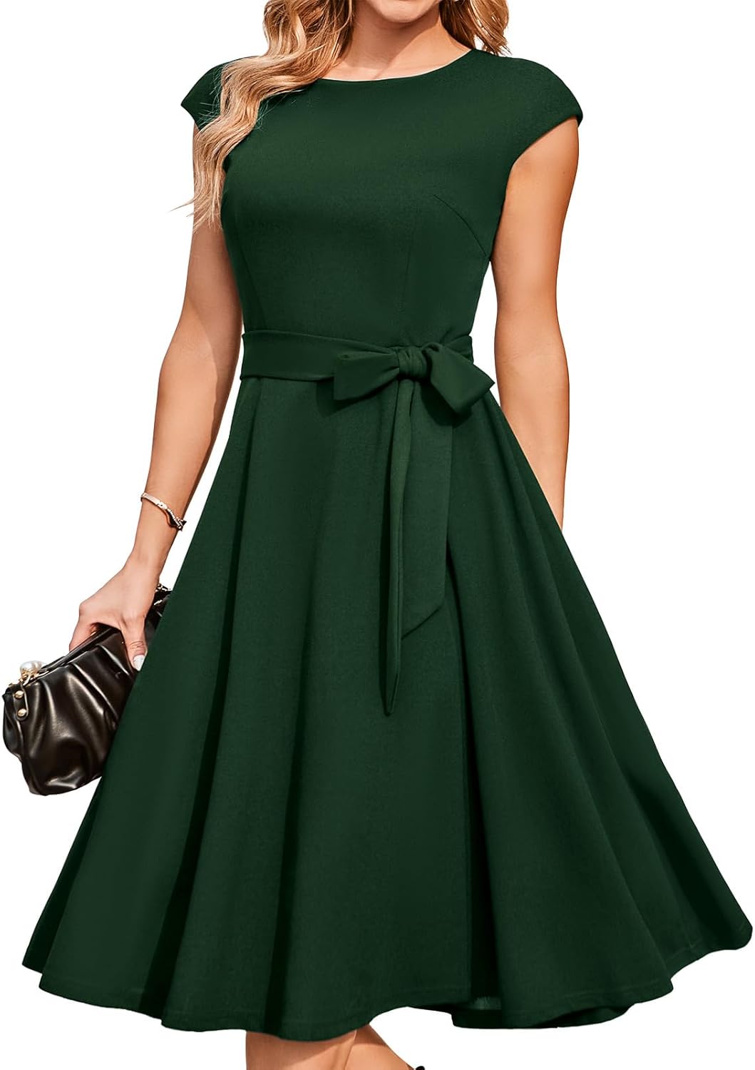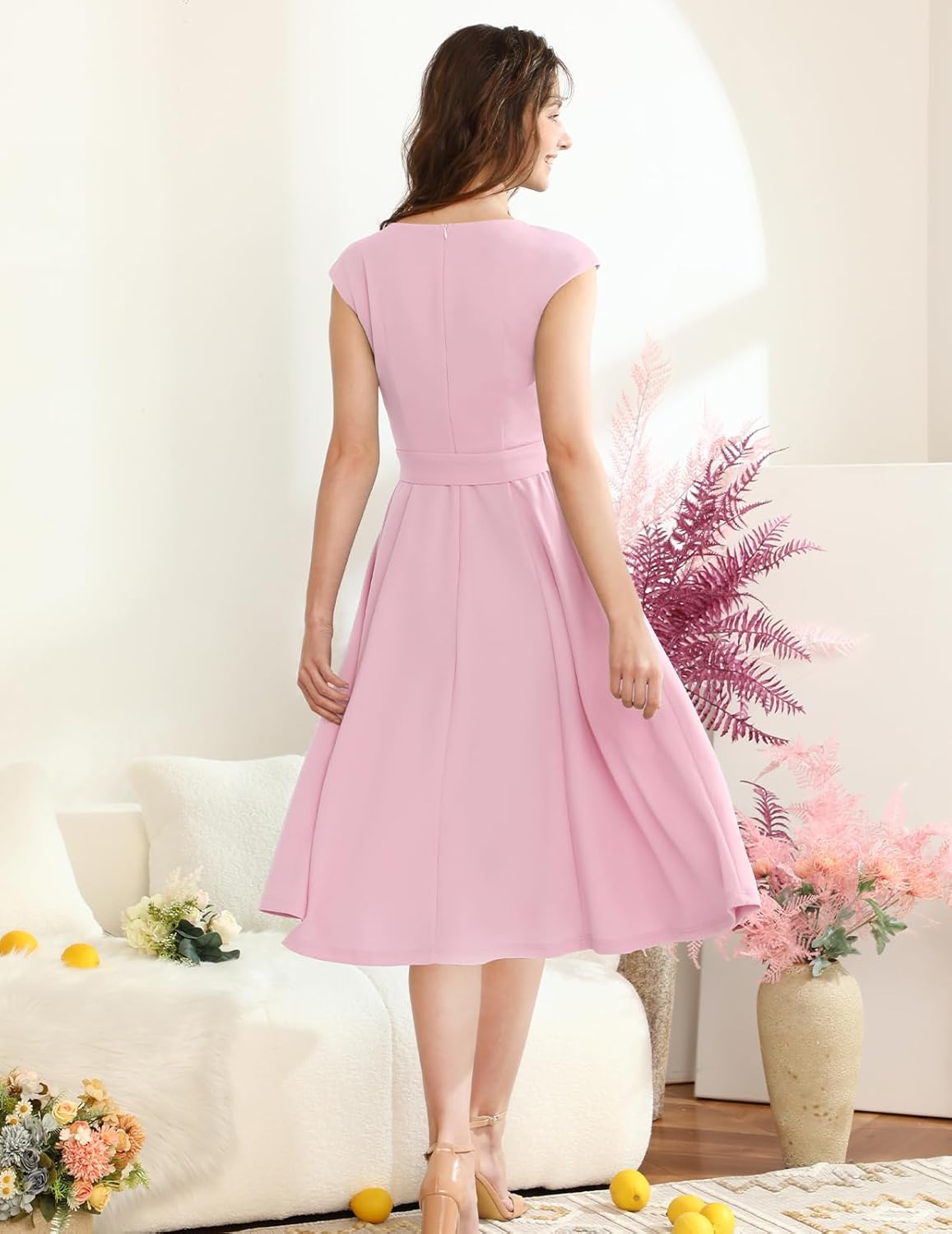 Női tavaszi/nyári 2025 ruhák: Ez a laza esküvői vendégruha tökéletes mind elegáns alkalmakra, mind a mindennapi viseletre! A rövid ujjak kiemelik a vállaidat! Ez a rugalmas és lenge western stílusú ruha kényelmes és derékban testhezálló anélkül, hogy túl szoros lenne.