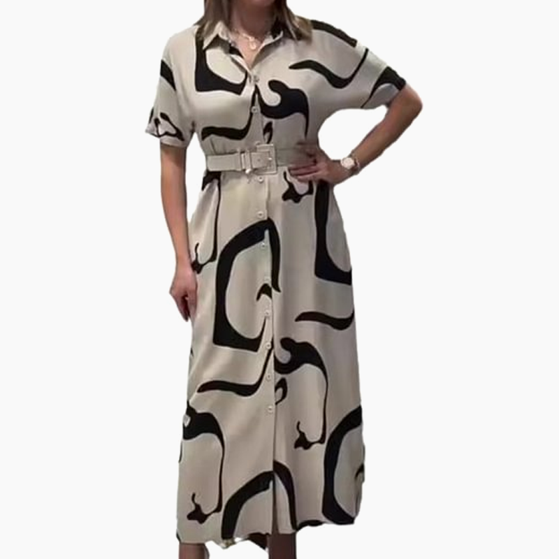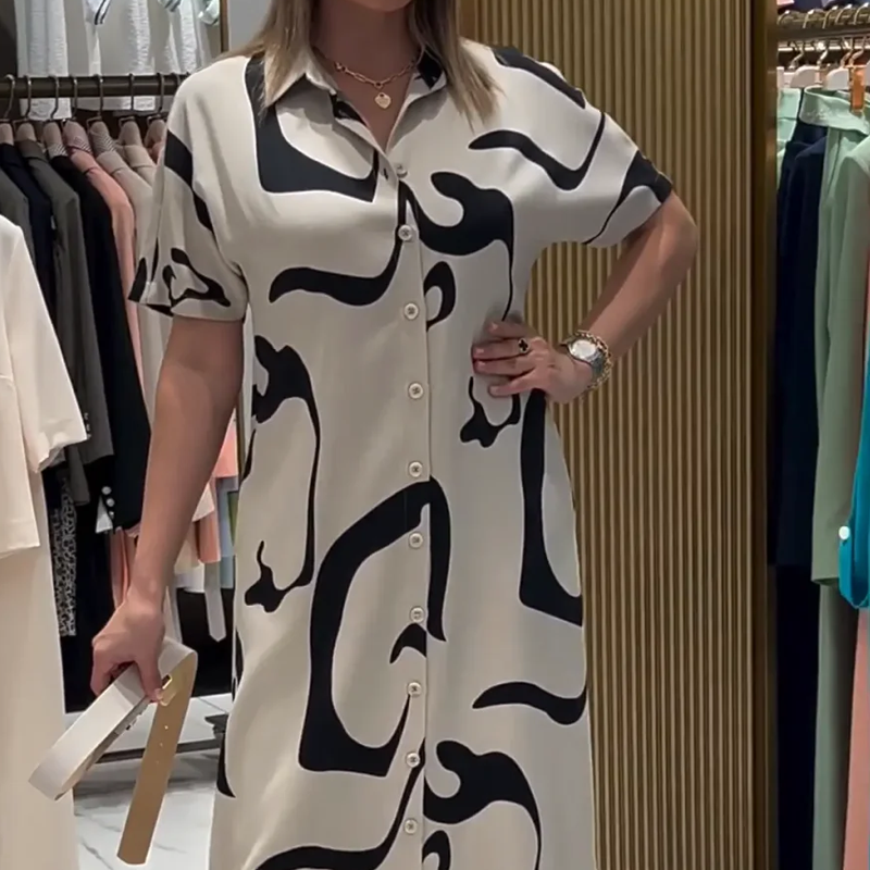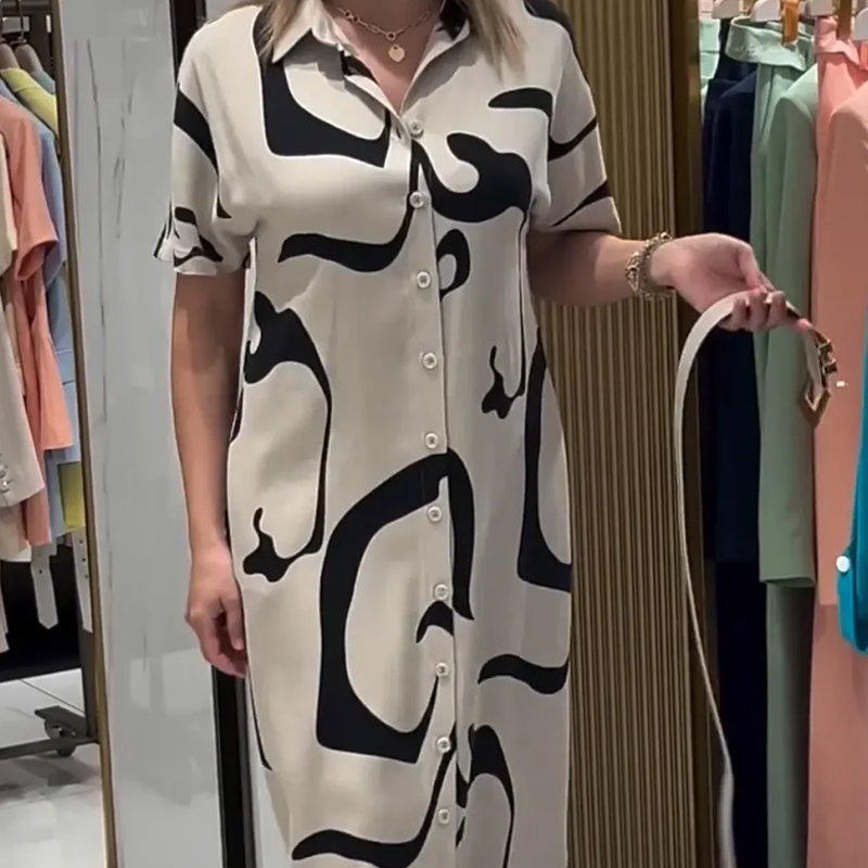 KÉNYELMES SZŐNYEG - A puha, könnyű poliészter anyag egész napos kényelmet biztosít anélkül, hogy a stílus rovására menne. Az anyag gyengéd a bőrhöz, ellenáll a gyűrődéseknek és könnyen ápolható. Akár ügyeket intézel, akár egy összejövetelen veszel részt, ez a ruha minimális erőfeszítéssel gondoskodik a kifinomult megjelenésedről.