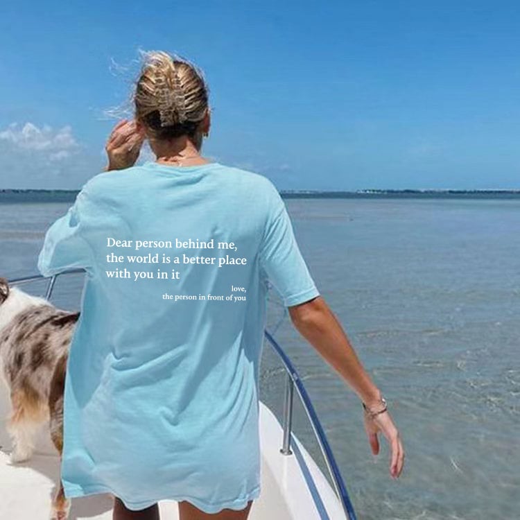 Egy „Kedves Ember Mögöttem” feliratú póló viselésével pozitív energiát és kedvességet terjeszthetsz , bárhová is mész.