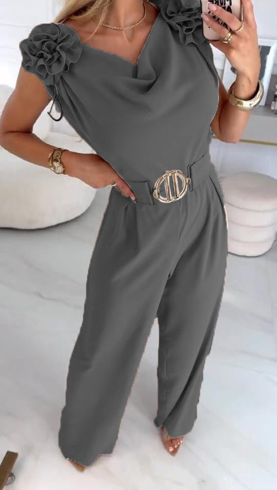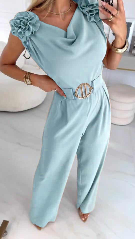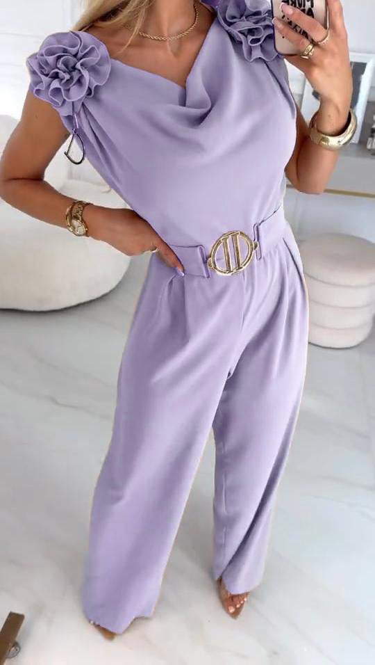 Női nyári ujjatlan overál 3D virágmintával és V-nyakkal