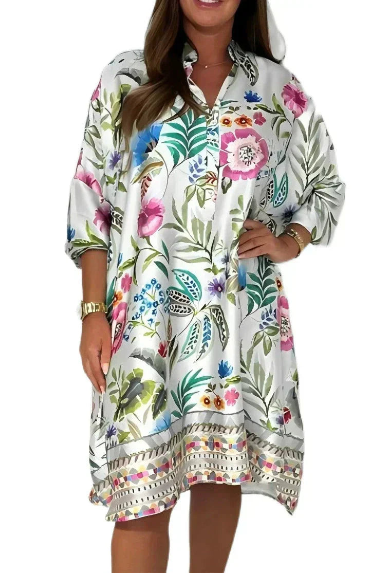 🌺Laza virágmintás ruha gombos V-nyakkal
