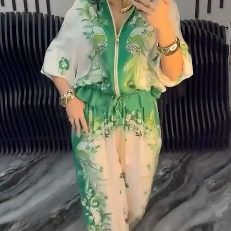 Elegáns virágmintás: Ez a kétrészes készlet finom virágnyomatokkal rendelkezik, amelyek elegáns megjelenést adnak, amely könnyedén kiemeli az Ön kifinomult stílusát hétköznapi és hivatalos alkalmakra egyaránt.