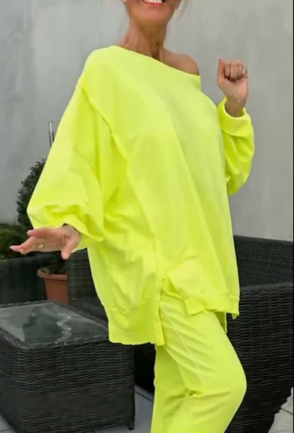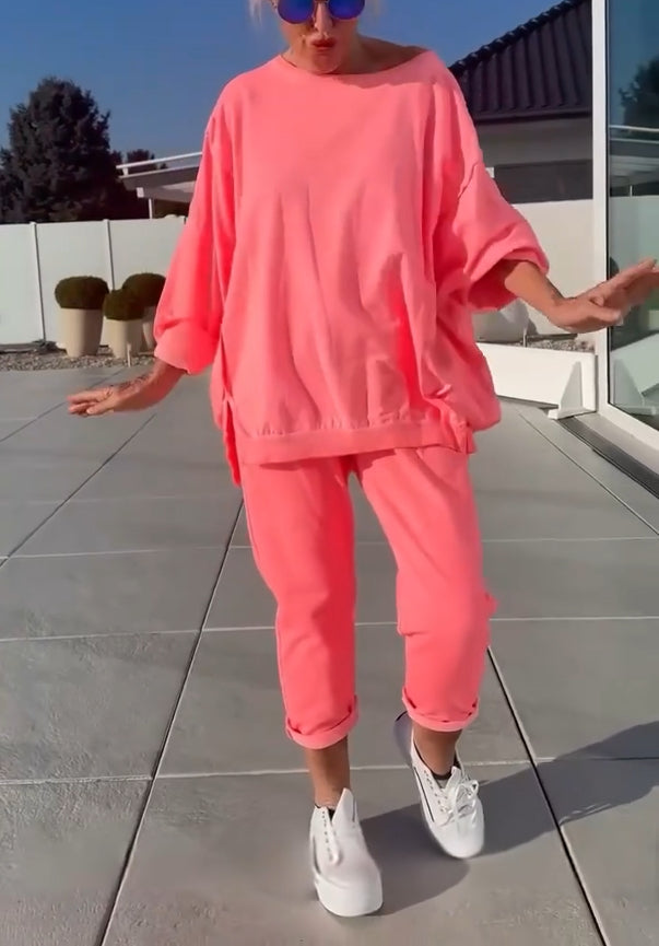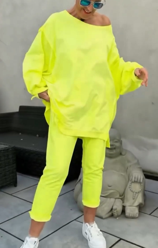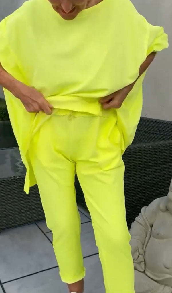 Nyári női kerek nyakú, hasított, világos színű, lezser kosztüm