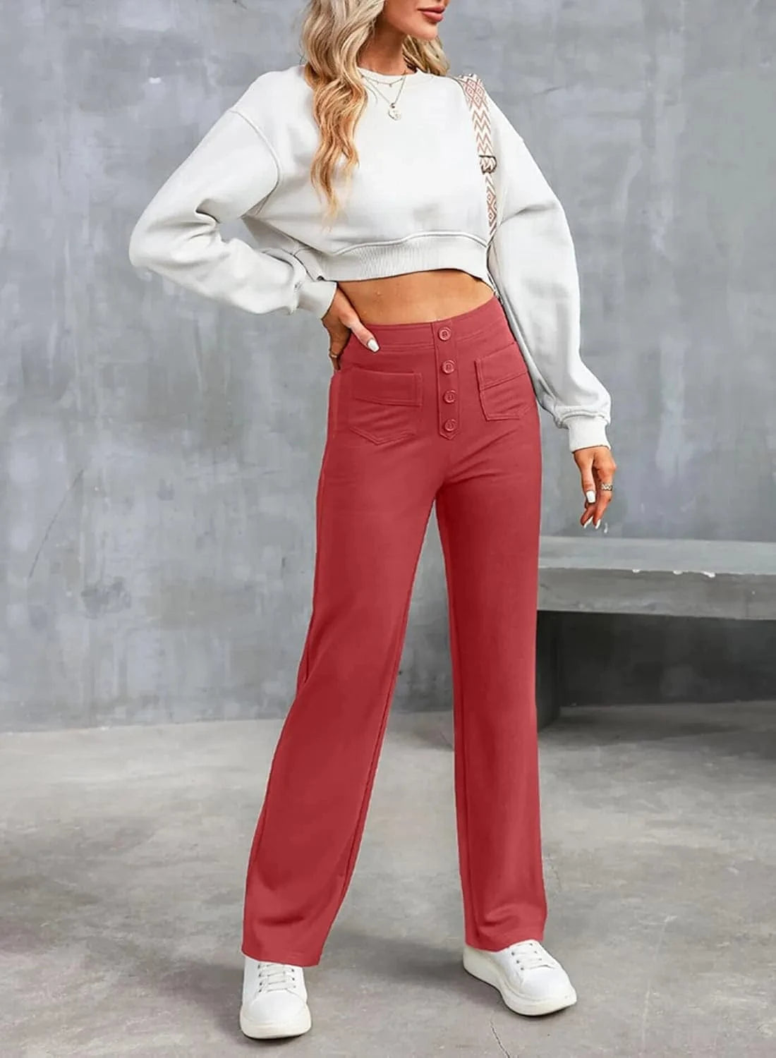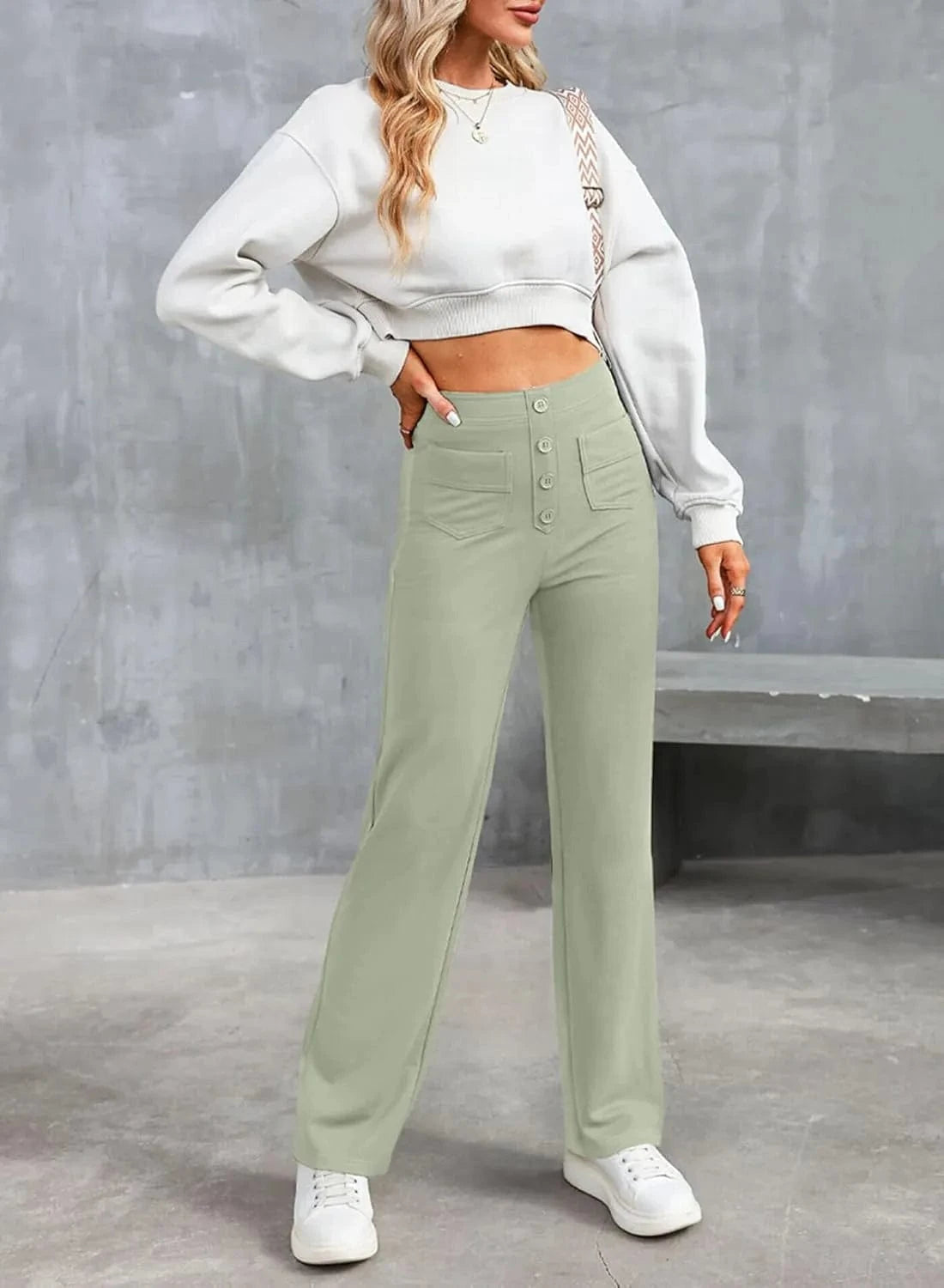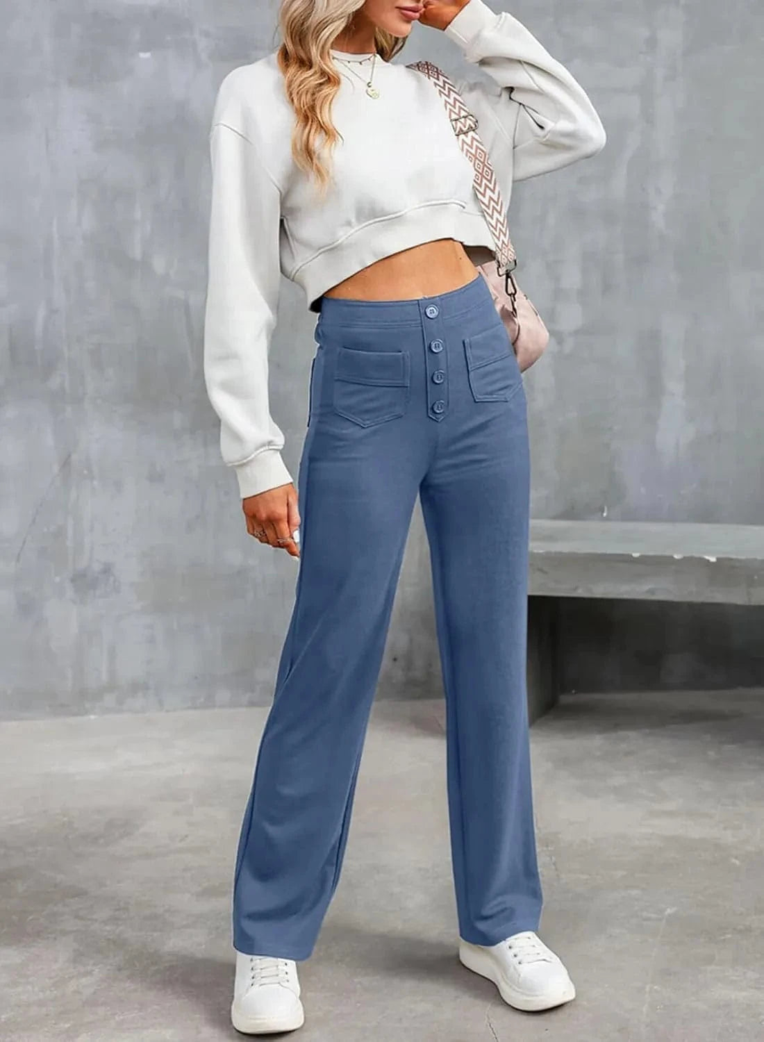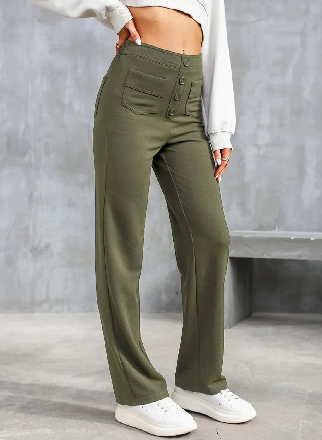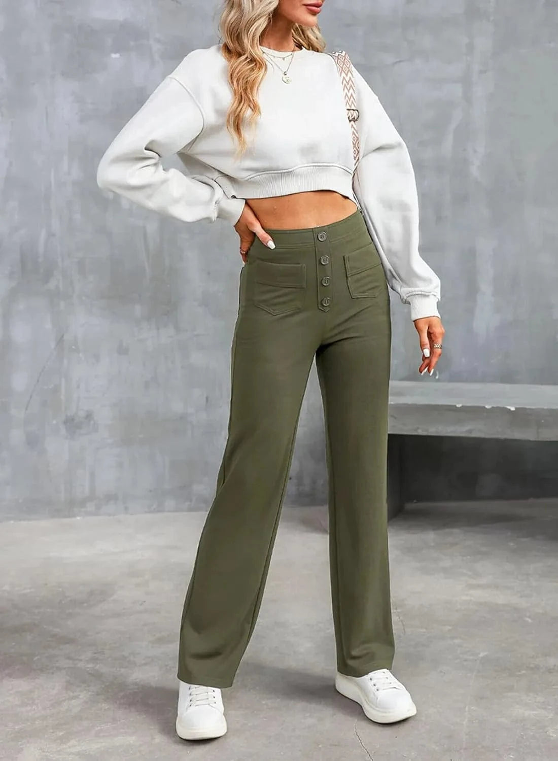 ♻ Stílusos gombrészletek: Ki mondta, hogy a gomboknak csak működőképesnek kell lenniük? Nadrágunk gyönyörű gombos díszítéssel rendelkezik.