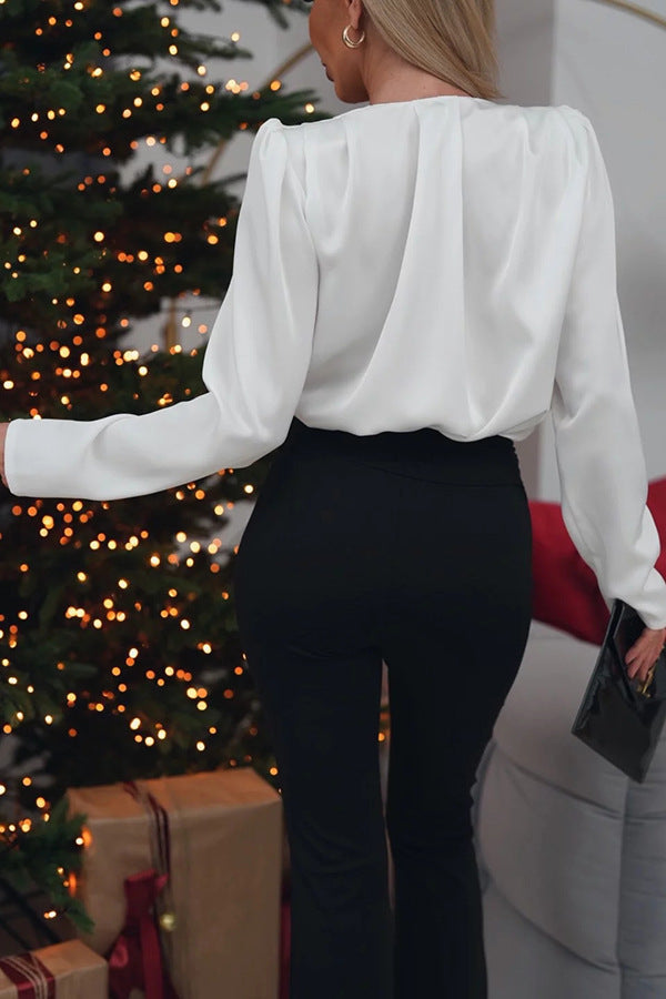 Ez a V-nyakĂș szatĂ©n ing biztosan slĂĄger lesz a divatosok körĂ©ben! A kifinomult, polĂrozott anyag Ă©s a kivĂĄgott mandzsettĂĄk rĂ©vĂ©n az ing a testhez tapad, Ă©s redĆs hatĂĄst kelt, amely gyönyörƱen kiemeli a derekĂĄt. A nyakkivĂĄgĂĄs, amelyre egy elegĂĄns rĂłzsa hĂmzett, vonzza a figyelmet. A stĂlusos nadrĂĄgokhoz Ă©s szoknyĂĄkhoz tökĂ©letesen illĆ ing csillogĂĄst kölcsönöz öltözĂ©kĂ©nek, akĂĄr egy estĂ©re mĂ©sz, akĂĄr egy fontos esemĂ©nyt ĂŒnnepelsz.