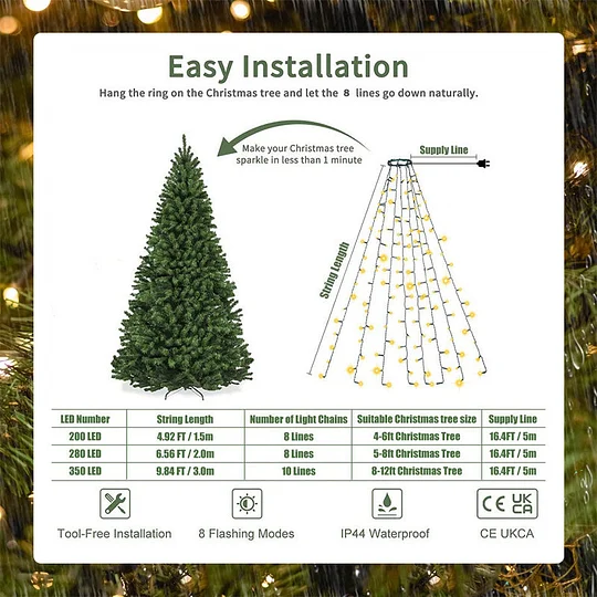 A LED-es fĂ©nykombinĂĄciĂł ĂĄlomszerƱ vĂzesĂ©shatĂĄst kelt, a fĂ©ny termĂ©szetesen hullik felĂŒlrĆl, mint a Lysfoss, eleganciĂĄt Ă©s bĂĄjt kölcsönözve a karĂĄcsonyfĂĄdnak!