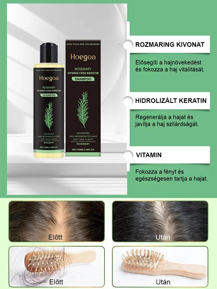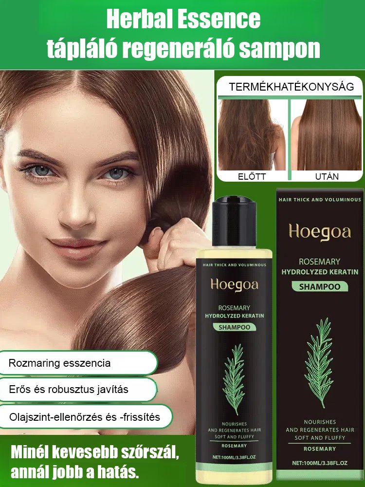 Minél kevesebb a haj, annál jobb a hatás: gyógynövényes esszenciával tápláló és helyreállító sampon.