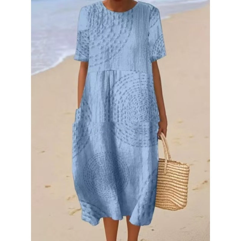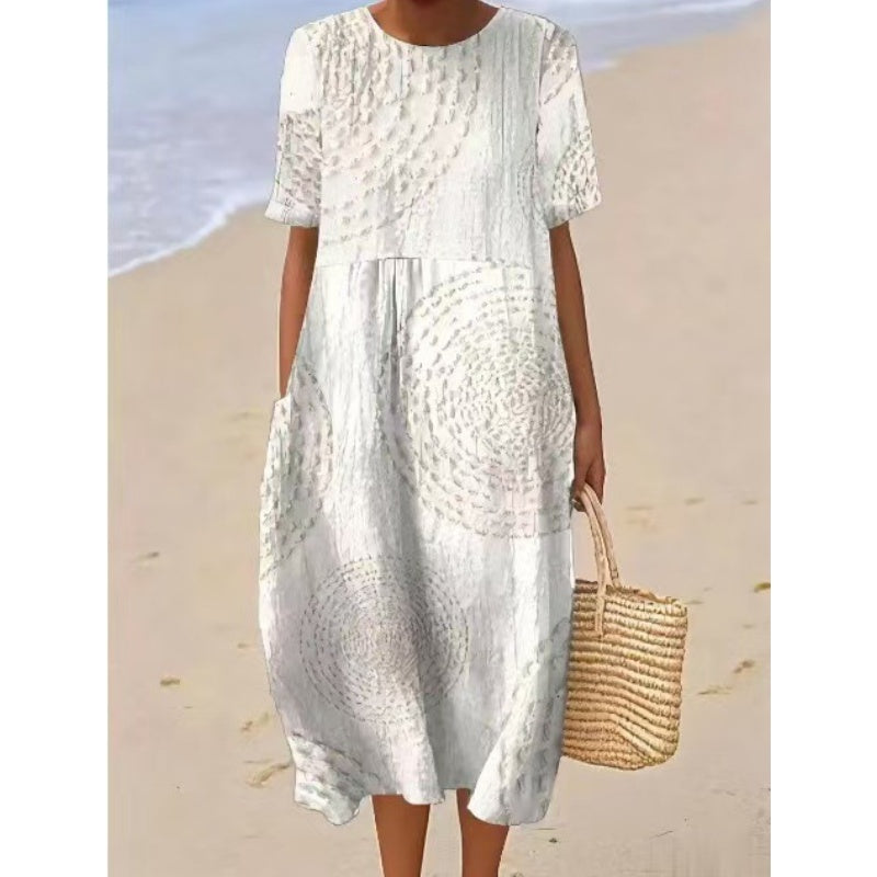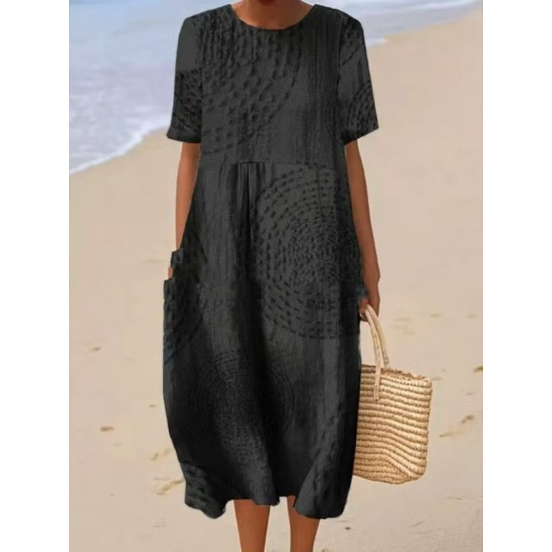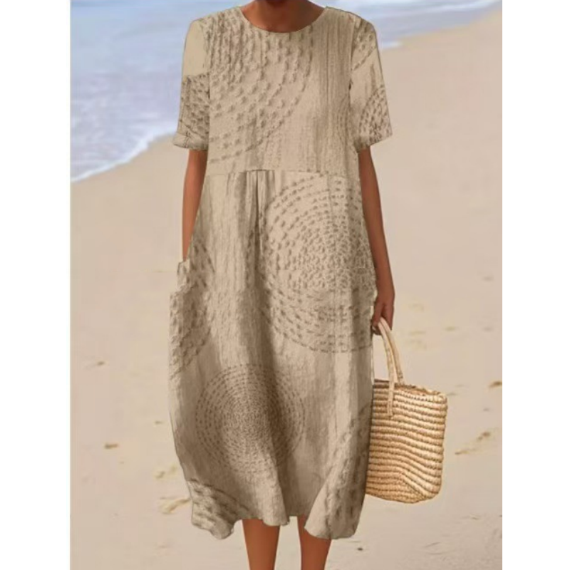 LAZA FAZON: A kényelmet szem előtt tartva tervezett midi ruha laza, laza szabással rendelkezik, amely könnyű mozgást és lélegző képességet biztosít, így tökéletes a mindennapi viseletre.
