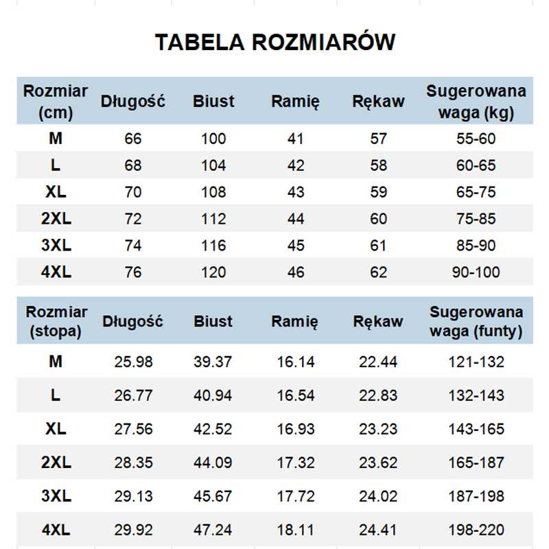 Méretek: M, L, XL, 2XL, 3XL, 4XL