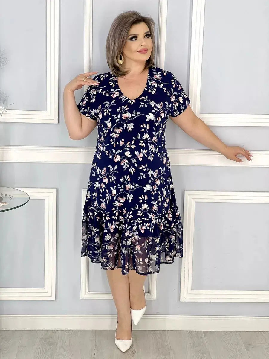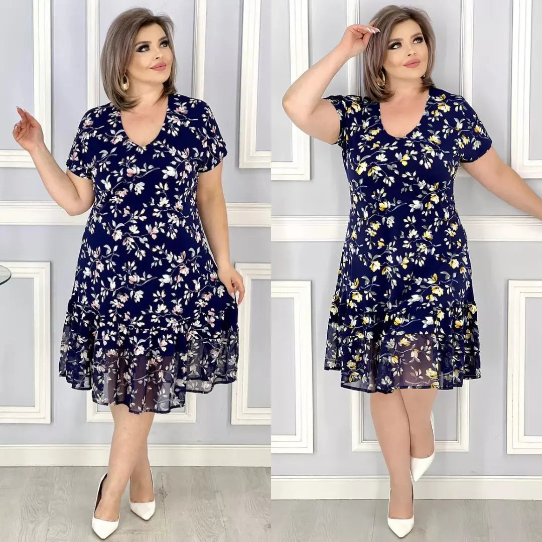 Új, virágos V-nyakú ruha