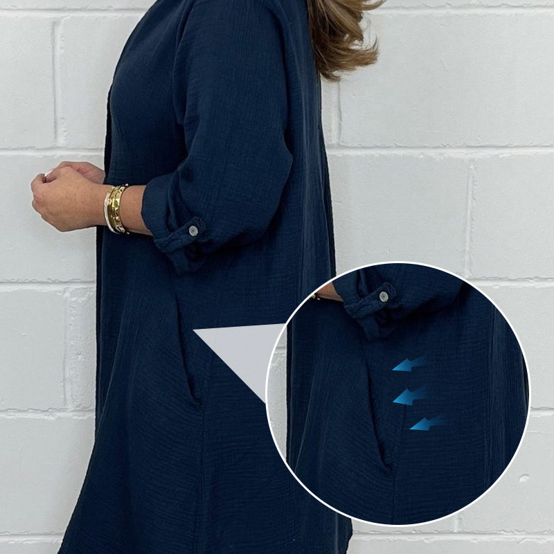 Praktikus zsebek - Két tágas zsebbel ellátva ez a ruhadarab egyszerre praktikus és praktikus, lehetővé téve, hogy kisebb tárgyakat kézitáska nélkül hordozhasson.