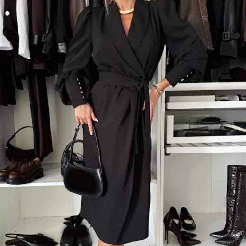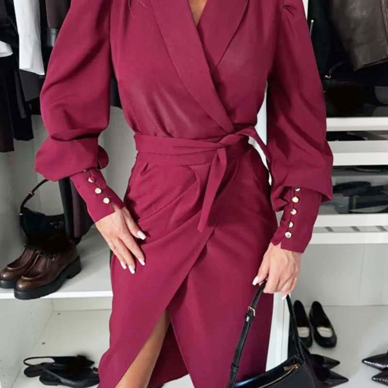 A csomag tartalma: 1 * hosszú ujjú, V-nyakú női ruha megkötős derékkal