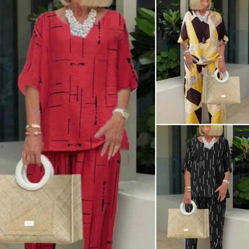 DIVATOS ÉS STÍLUSOS KIALAKÍTÁS: Ez a kétrészes szett bő félujjú felsőt és hozzáillő nadrágot tartalmaz, modern és stílusos megjelenést biztosítva minden alkalomra.