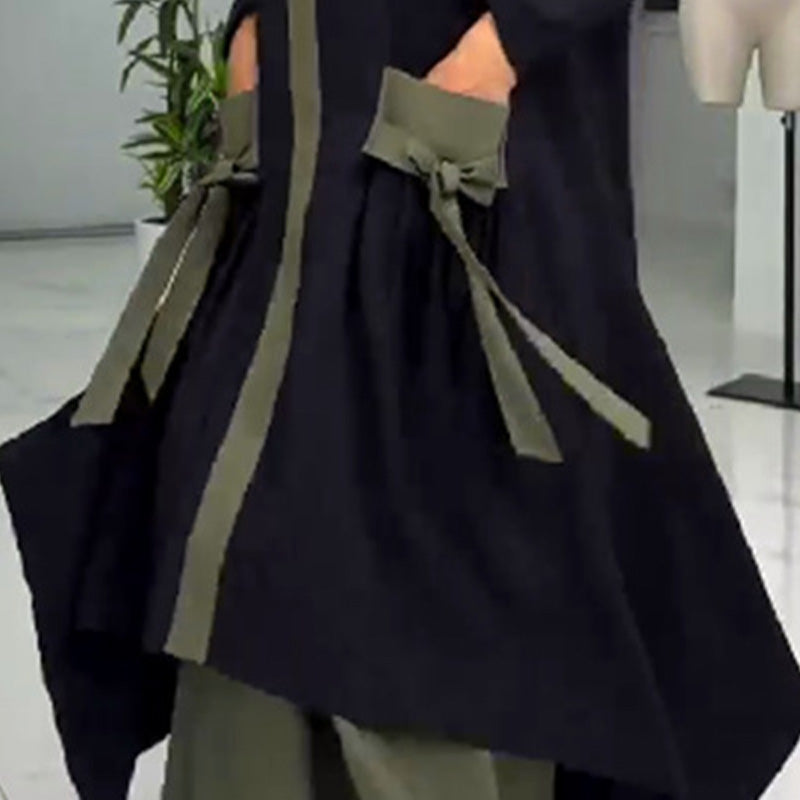ROROLTOS UJJÚ KIALAKÍTÁS: Az egyedi rojtos ujjak játékos és dinamikus elemet adnak a ruhának. Ez a szemet gyönyörködtető részlet mozgást és hangulatot kelt, kiemeli az összképet, és bemutatja stílusérzékét.